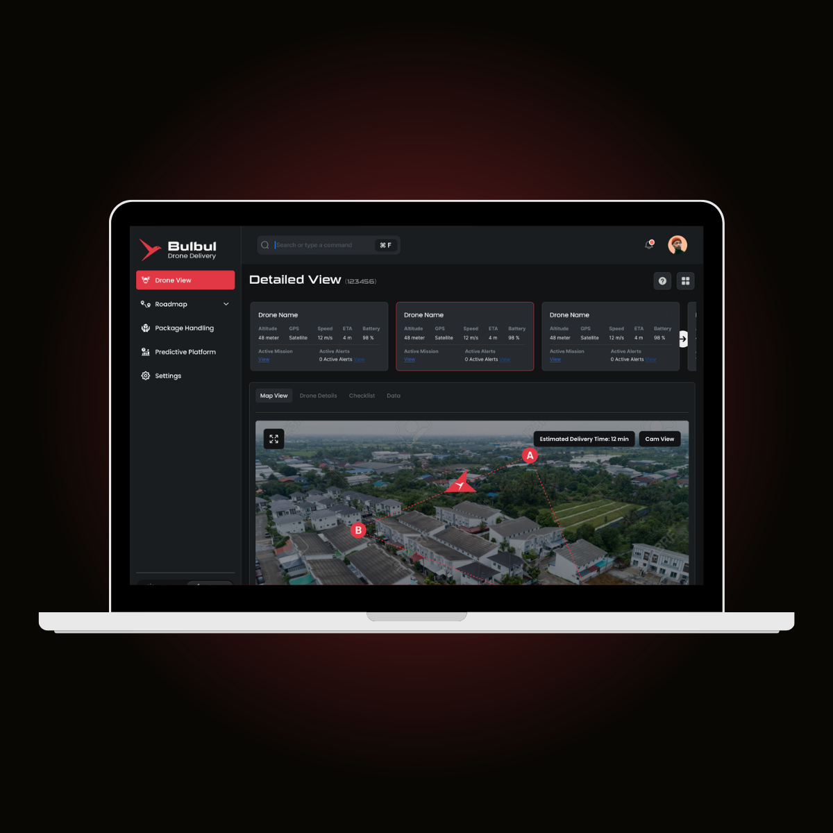 Bulbul's ADFP (Automated Drone Flying Platform) is an AI-powered platform that enables business to efficiently manage their autonomous drone fleets. Designed for seamless communication between command station and fleet of drones, predictive maintenance with FAA Compliance for BVLOS operations.