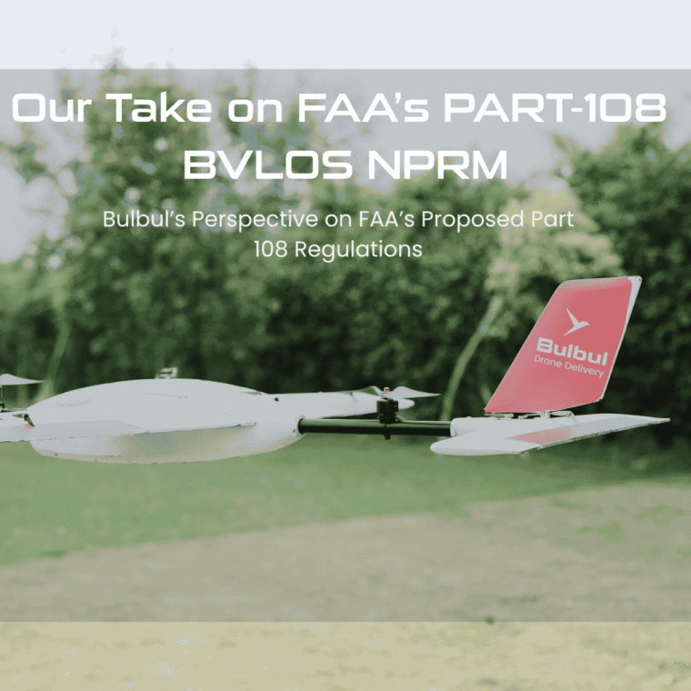 As the Federal Aviation Administration (FAA) advances its efforts to establish a formal framework for Beyond Visual Line of Sight (BVLOS) drone operations through its proposed Part 108 rule, Bulbul Inc. conducted an in-depth internal review of the Notice of Proposed Rulemaking (NPRM) and developed a detailed set of recommendations reflecting the realities of commercial drone delivery operations.
